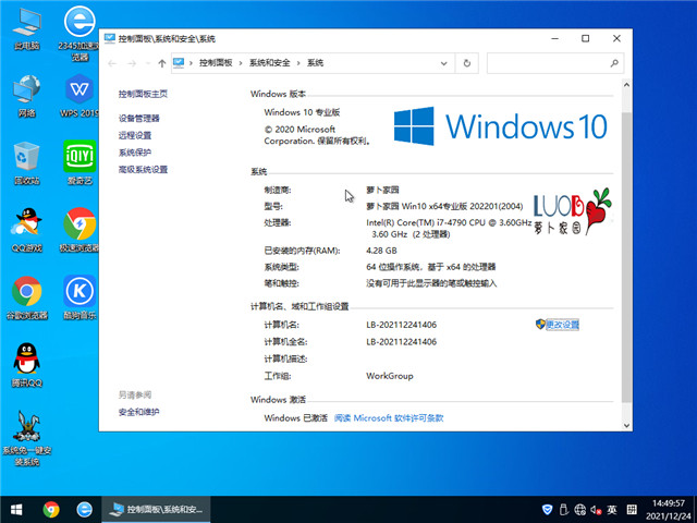萝卜家园Ghost Win10 64位专业版 v2022.01描述: