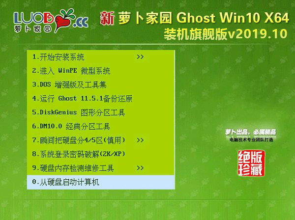 新萝卜家园Ghost win10 64位 装机旗舰版v2019.10优化: