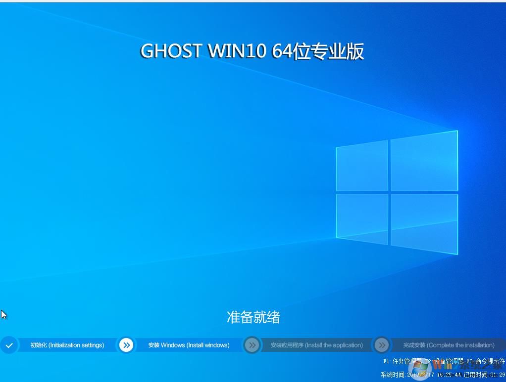 4、进入WINPE系统后,一键安装开始安装Win10。