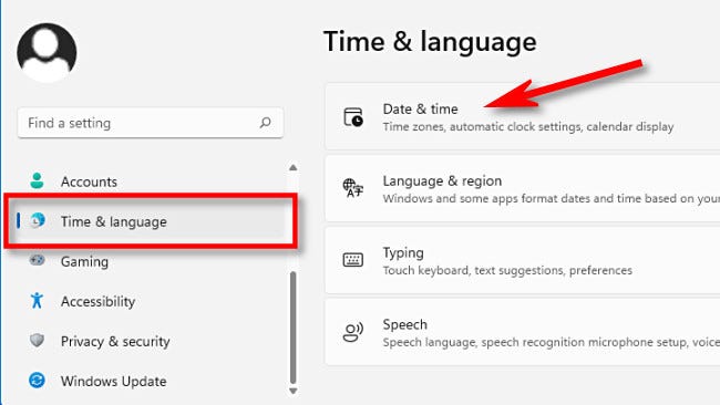 2. 找到时间和语言,然后单击日期和时间。