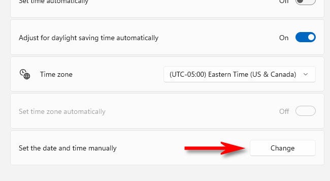 4. 找到下面的手动设置日期和时间,然后单击进行更改。