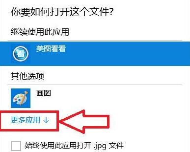 3. 选中始终使用此应用程序打开.jpg 文件。