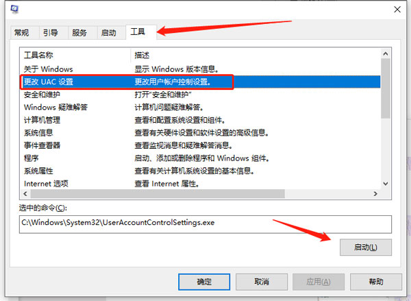 3. 开始在工具中更改UAC 设置以更改用户帐户控制设置。