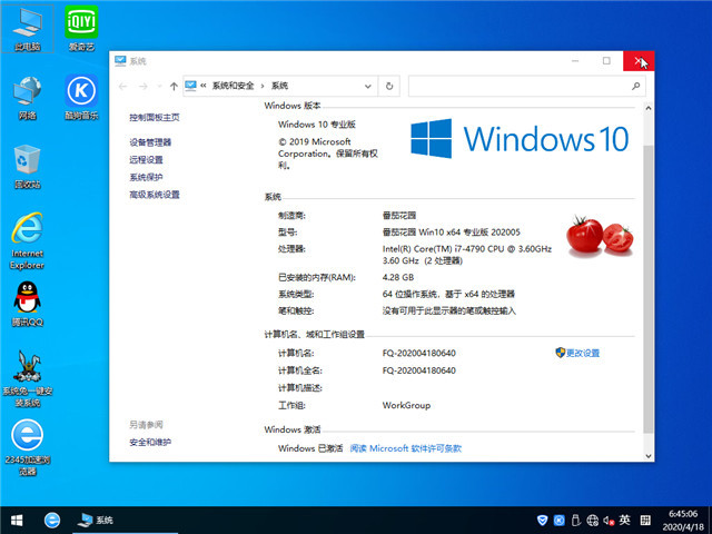 番茄花园Win10 x64免费激活专业版v2020.05 系统功能非常全面,不仅可以让您顺利工作,还可以让您顺利玩游戏、娱乐。它非常容易使用,系统各方面都非常强大。我们已经对系统进行了激活,并采用新技术进行封装,让您使用安全、稳定、流畅的系统。