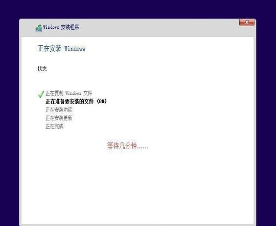 第六步:接下来,选择格式化的磁盘,进行文件复制和安装过程;