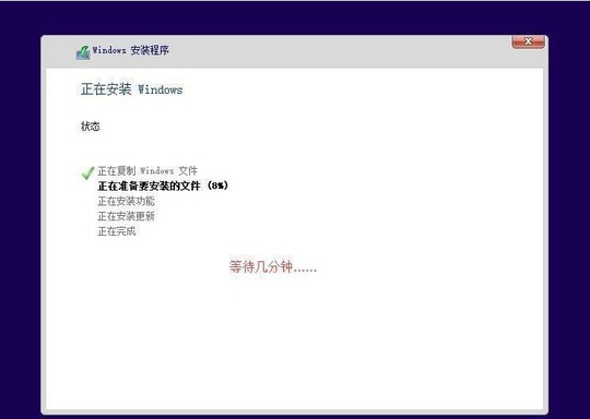第六步:接下来,选择格式化的磁盘,进行文件复制和安装过程;