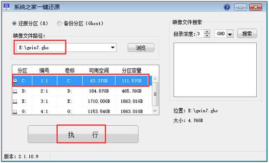 在列表中选择系统盘(默认C盘),选择“WINDOWS.GHO”镜像文件,点击执行。系统会提示您是否重新启动。点击是,系统会自动安装。