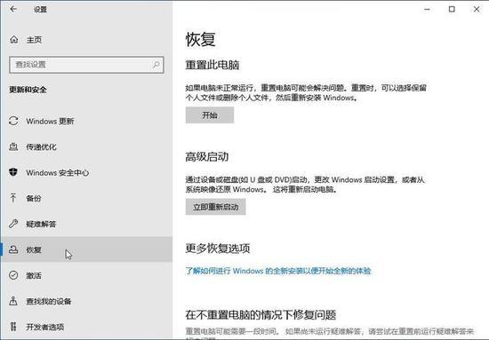 Win10在“重置此电脑”中增加了云下载和重装系统功能,而之前只有本地系统重装功能。从云端下载并重新安装的Win10系统版本将与您当前的系统版本完全相同。进入“Windows设置-更新和安全-恢复”设置界面,可以看到“重置这台电脑”功能。