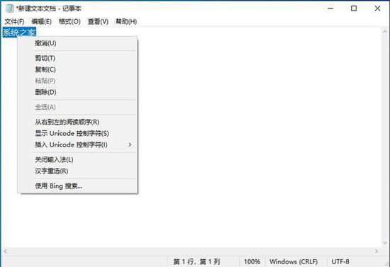 此外,记事本还增加了字体调整、行列位置识别、Bing搜索、UTF8编码等新功能。