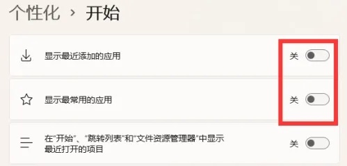 如何关闭Win 11推荐的项目: