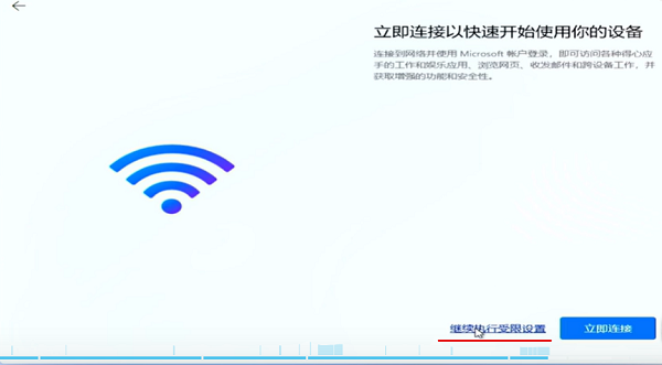 单击我没有internet连接-选择继续使用受限设置。