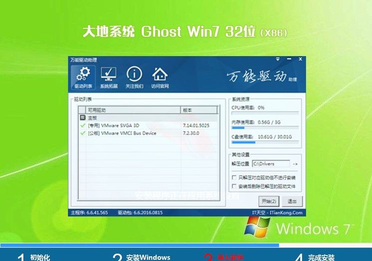 大地系统ghost win7 32位精简纯净版已在多台不同硬件型号的电脑上测试安装。没有出现蓝屏现象,硬件驱动完美。未经数字签名的驱动程序可以避免手动验证,从而允许这些驱动程序在进入桌面之前自动安装。当您首次登录桌面时,后台会自动判断并清理目标机器上残留的病毒信息,清除残留病毒。清除所有多余的启动项和桌面右键菜单,并修改注册表以减少预取和进度条等待时间。