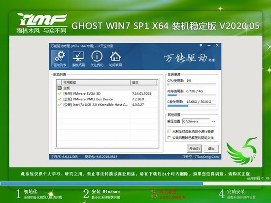 -安装过程中会运行自主研发的驱动选择工具,可以智能判断所有电脑硬件型号,最大程度避免因驱动冲突而导致蓝屏。