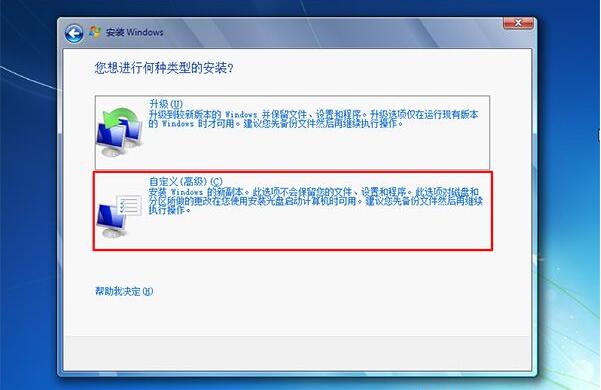 4、接受协议后来后来到安装类型选项界面,我们选择“自定义(高级)”