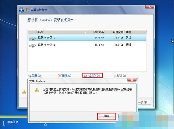 6、再点击格式化,确定后下一步!