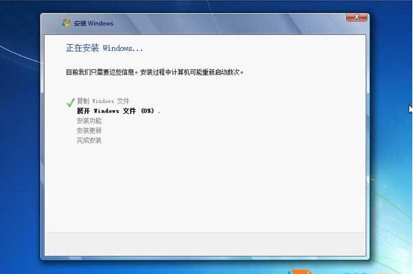 7、开始复制文件并进行安装,接下来数次重启,都是无需人工操作的,直到系统安装完成。