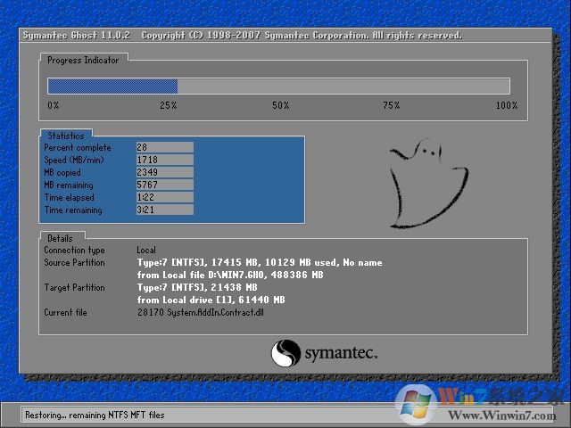 在列表中选择系统盘(默认C盘),选择“WIN7SP1.GHO”镜像文件,点击执行。系统会提示是否重启,点击是,系统会自动安装。