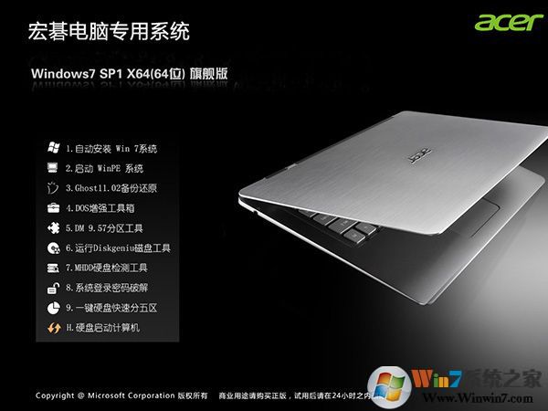 1、Acer Windows7 SP1 X64 OEM旗舰版为原盘,更稳定;