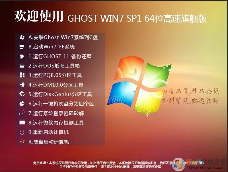 【高速机型】Windows 7 64位旗舰版系统精品版可安装在所有电脑上,快速解决系统卡、慢的问题,大幅提升电脑速度,让游戏更流畅,让工作更轻松高效的。这个版本已经通过了本站编辑的测试,兼容性非常好。该系列的Win7系统使用一年后无需重新安装,使用户的电脑始终保持在最佳状态。优化方面:极致优化,安装后没有优化空间。它占用的资源较少,只要你的电脑配置不是特别差,那么运行任何软件都没有问题。大大减少无响应的情况,无论是个人用户还是电脑城安装、重装、维护,都能保证电脑有更好的效果