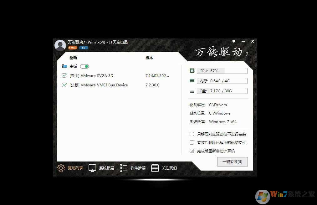 2、更新通用驱动至IT Sky稳定版7.5;