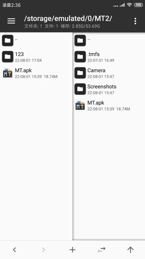 进入MT Manager后,首先看到的是左右两个文件列表窗口。