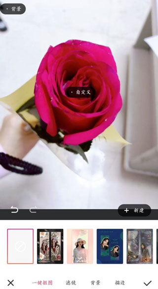 5.我把玫瑰扣在中间,点击图中的“自定义”。