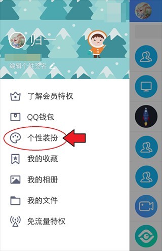 2. 然后软件左侧会打开一个侧边栏。我们点击侧边栏中的个性化着装选项。