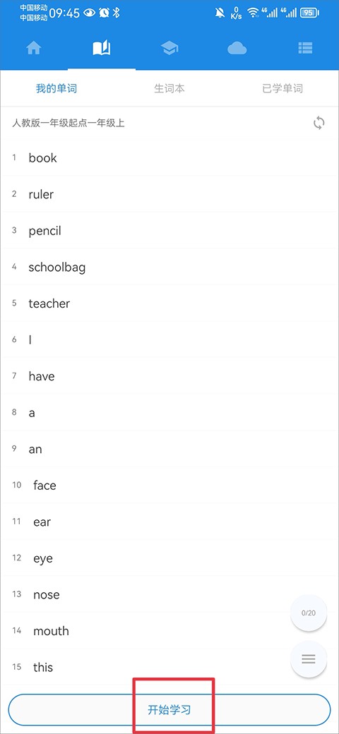 5、选择完成后,在My Word界面点击开始学习即可学习课本中的所有单词。