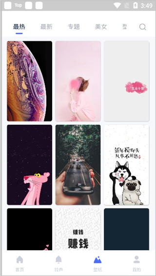 4.“壁纸”也分为最新、最热、专题、美女等。