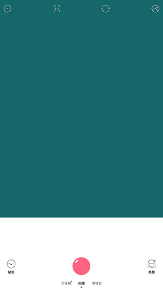 1。输入软件后,我们可以看到当前的[拍摄内容],通过向左和右滑动,您还可以切换到长视频或表情符号的拍摄模式。