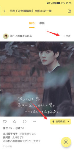 3。然后选择使用模板。或者,如果您想继续遵循此模板的作者,则可以单击右上角。