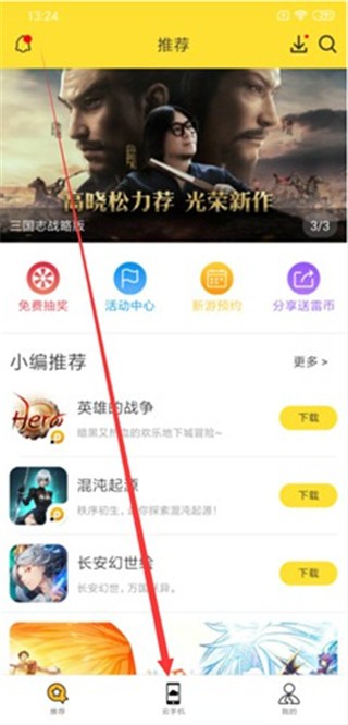 3。搜索您想在云手机应用程序市场上挂断的游戏,下载游戏和辅助设备;