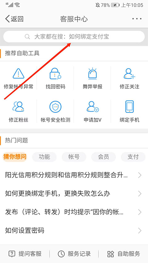 4.进入客户服务中心界面后,点击“搜索框”选项。