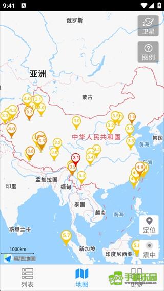 3、地震清单上的所有地震均可在地图上定位,并通过标记符号区分地震发生的震级和时间;