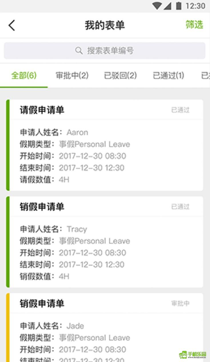 5、主管审核:随时随地在移动端审批各类员工表格申请。