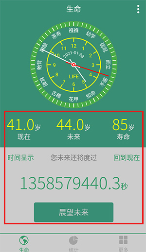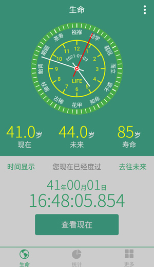 3.计算现在和未来的生命长度,并添加时间倒计时功能,让人感受到时间的宝贵。