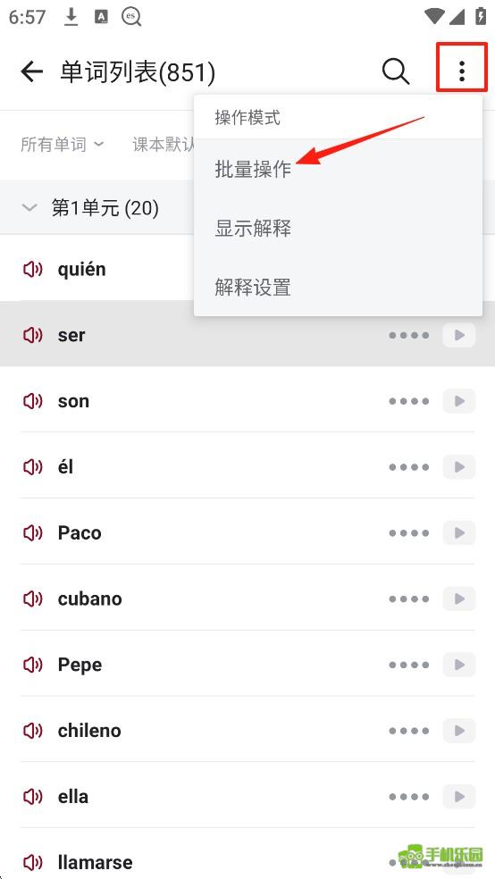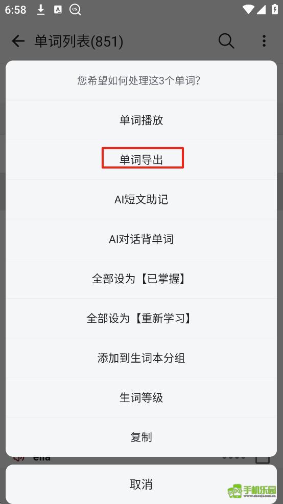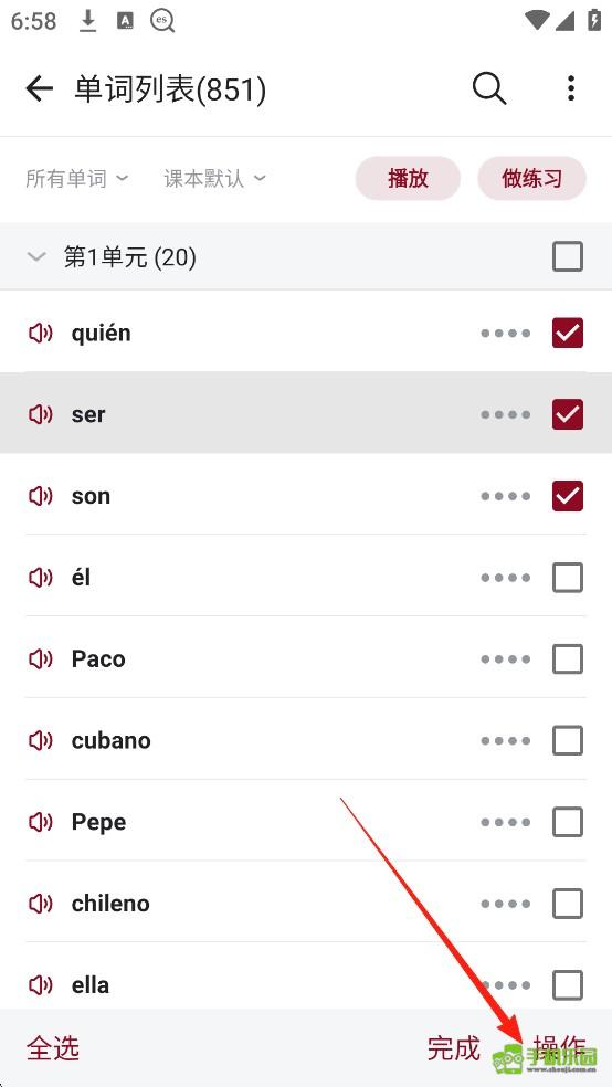 4.选择要导出的单词,点击【操作】