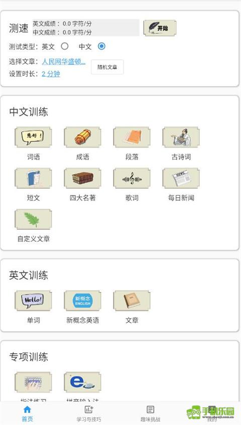1.打开软件,可以看到软件可以进行中文培训、英语培训和专项培训。这里小编选择了中文培训。
