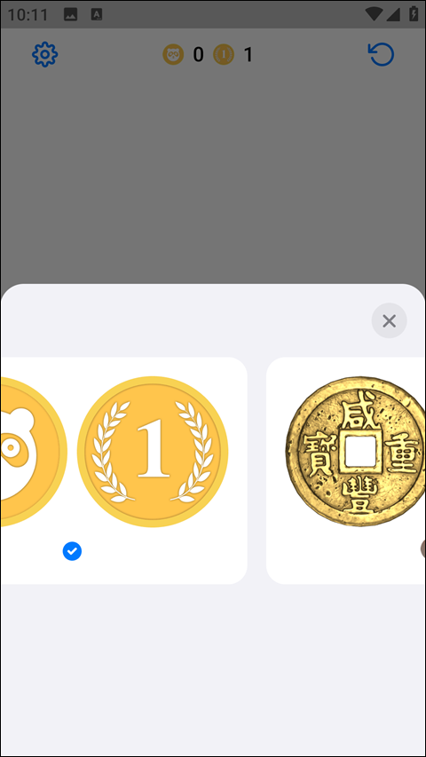 5、最后的抛硬币也是最简单的,只有正反两个面,但提供了多种硬币样式供玩家选择。