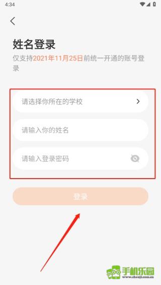 4.您也可以选择通过姓名登录,选择您的学校、姓名和登录密码,然后点击登录。