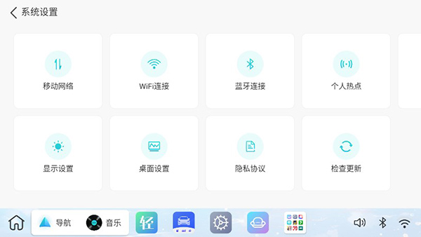 单击屏幕底部的齿轮图标,打开系统设置界面。