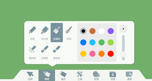 7.画笔功能,您可以在这里找到您需要的画笔,支持铅笔、荧光笔、毛笔笔、画笔、激光笔、纹理笔、智能笔;
