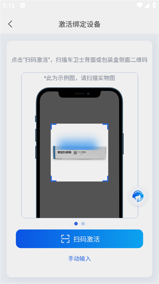 3.然后手动扫描车卫士二维码或手动输入条形码进行绑定。