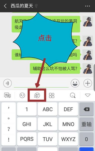 1.打开键盘后,点击键盘上表情图标右侧的选项。