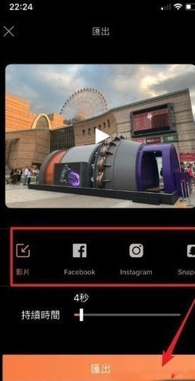 2.完成特效后,您可以直接选择导出为视频或直接分享到FB、IG等社交软件上。