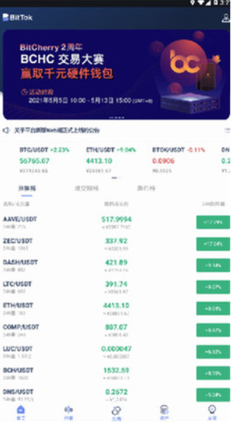 USDT交易区域:btc/Usdt、eth/Usdt、ltc/Usdt等/Usdt、bch/Usdt等;