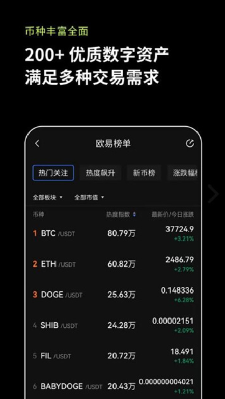 欧意交易所APP官方最新版本是2022数字资产及衍生品国际站。该软件主要为全球用户提供投资理财服务。数字资产及衍生品国际站主要提供比特币、以太坊、莱特币等一系列区块。 Chain Asset币币一站式投资平台由区块链和数字资产爱好者创立。核心团队来自谷歌、亚马逊、三星等全球知名互联网公司。投资机构包括JRR、Corinth Capital等,目前在韩国设有运营中心,所以如果感兴趣的用户欢迎您下载试用。