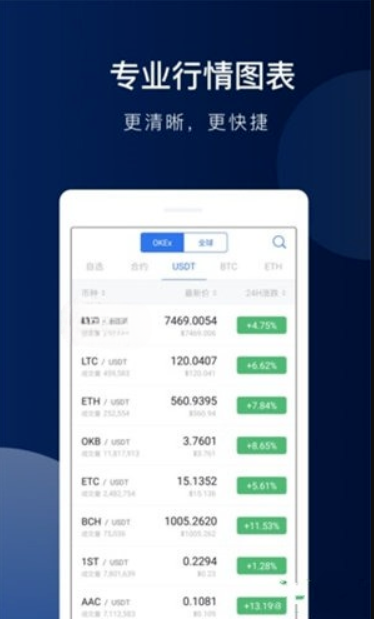 拥有专业的K线图表,为您带来各种专业的币种价格。