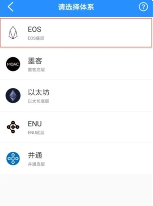 2.选择您要创建的底层钱包; (这里我们以以太坊钱包为例)