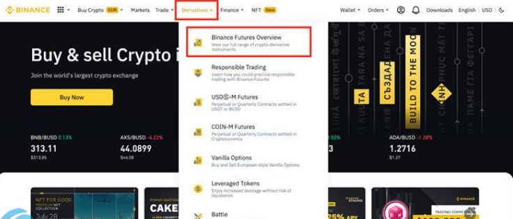 1.以币安为例。如果您还没有帐户,您可以点击此处注册新帐户。我们将介绍新手如何交易期货。在币安首页点击【衍生品】-【币安合约概览】。或者,您也可以直接进入合约交易界面。 (注:国内用户目前仅支持邮箱注册!)